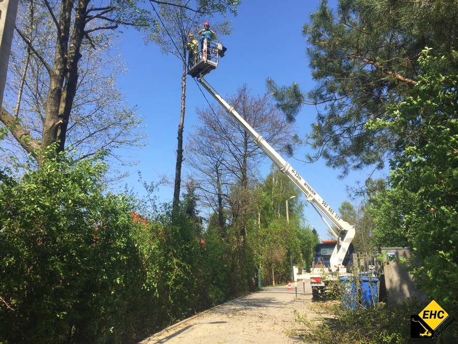 Przy wycince tego typu niezbędna jest szczególna ostrożność. Po odpowiednim rozstawieniu podnośnika rozpoczynamy pracę.
