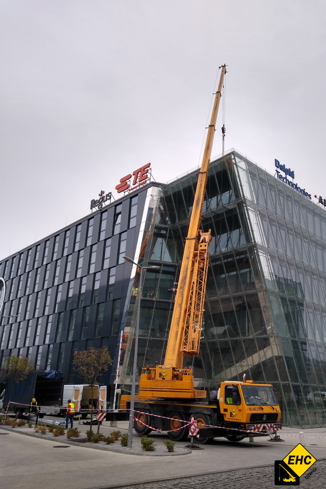 – Dzień dobry! Chciałbym wynająć dźwig. Muszę przetransportować na dach budynku w Krakowie keramzyt i inne potrzebne materiały. Będziemy tam wykonywać zielony dach. Czy może mi Pan pomóc?