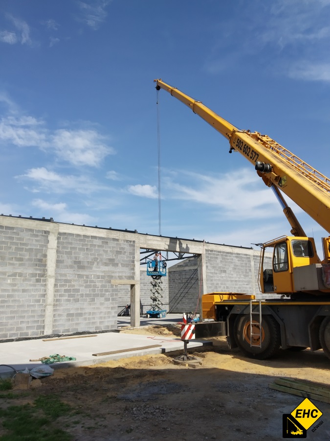 – Dzień dobry! Potrzebuję wynająć dźwig kołowy, prawdopodobnie na pół dnia. Mam na budowie do zainstalowania konstrukcję dachową. Nie waży ona bardzo dużo, jest stalowa. Czy byliby Państwo w stanie wesprzeć mnie w pracach w przyszłym tygodniu?