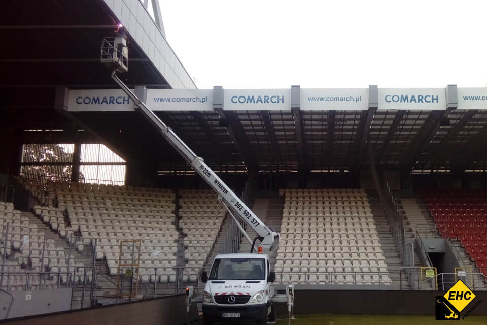 Jak nasz podnośnik koszowy H–22 m poradził sobie, pracując na stadionie?